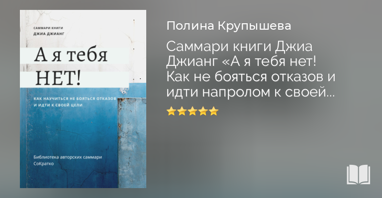 Полина Крупышева, Саммари книги Джиа Джианг «А я тебя нет! Как не бояться отказов и идти напролом к своей цели» — скачать в fb2, txt, epub или pdf