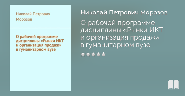Николай Морозов, О рабочей программе дисциплины «Рынки ИКТ и организация продаж» в гуманитарном вузе — скачать в fb2, txt, epub или pdf