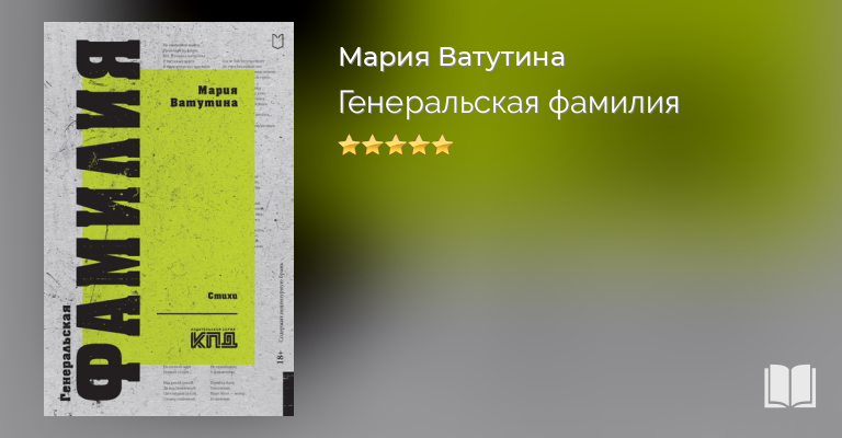 Новый сборник стихов поэтессы Марии Ватутиной включает несколько циклов: «Призыв», «Девять дней», «Голос крови», «Генеральская фамилия». С предисловием Захара Прилепина.