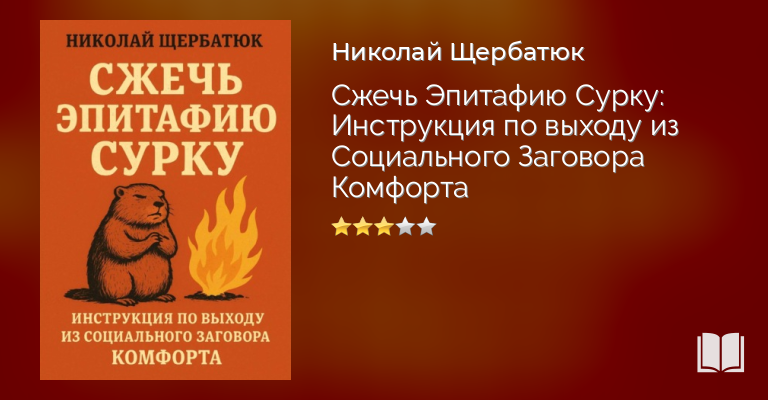 «Сжечь Эпитафию Сурку: Инструкция по выходу из Социального Заговора Комфорта» – это не книга о тайм-менеджменте, а радикальный, ироничный манифест и пошаговая инструкция по выходу из «Социального Заговора Комфорта». Вы ежедневно предаете свои мечты, обменивая свой потенциал на серую стабильность. Я называю это «Днем Предателя». Хватит!